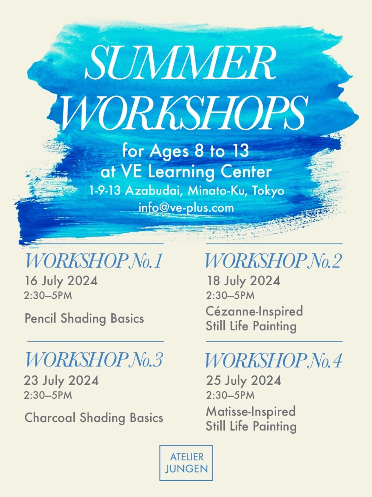 This summer, I am offering four Summer Art Workshops in Azabudai! The workshops are held at a new after-school learning center opening up right next to Azabudai Hills, called VE Learning Center. These workshops are open to BST and non-BST students. Each session is designed to inspire creativity and enhance artistic skills.